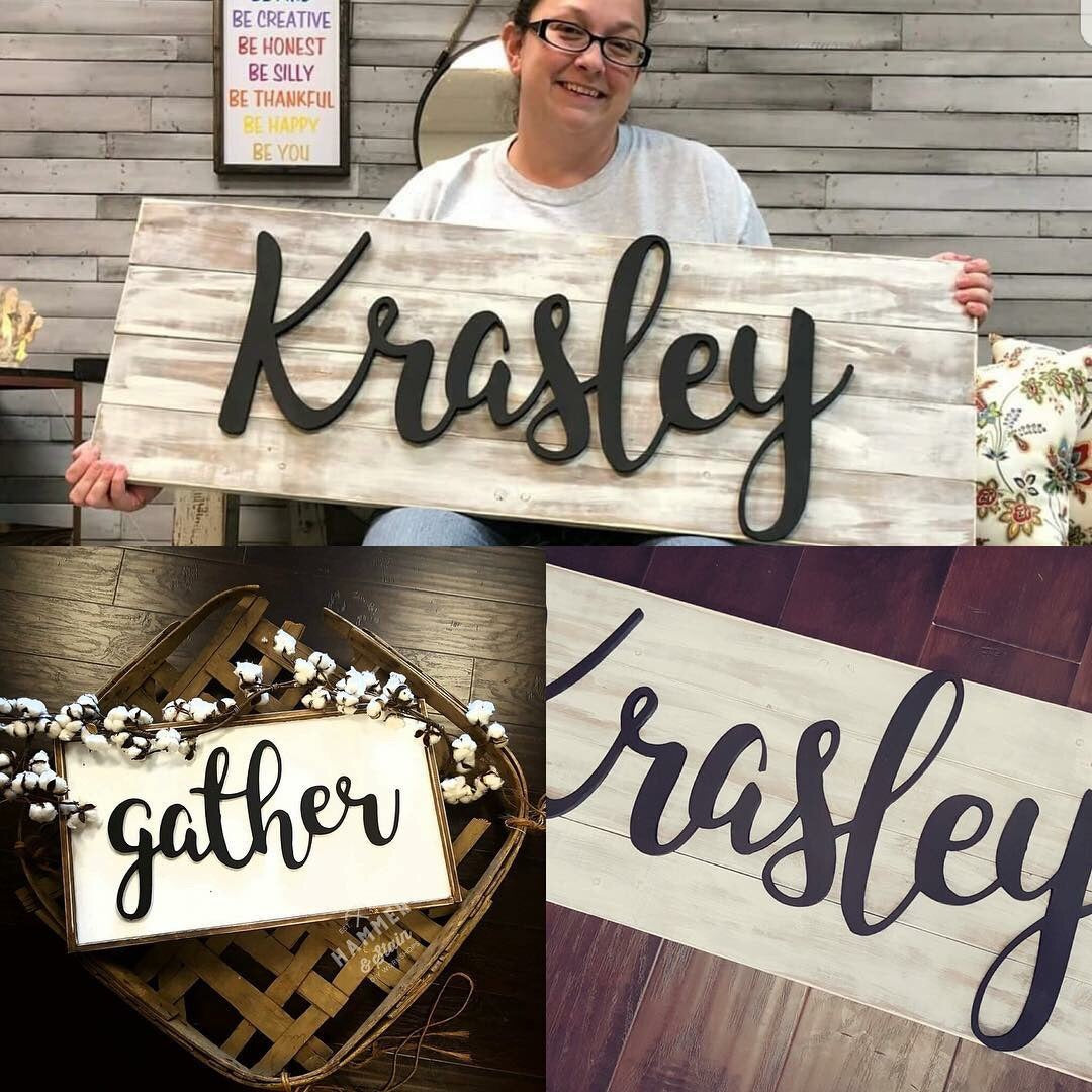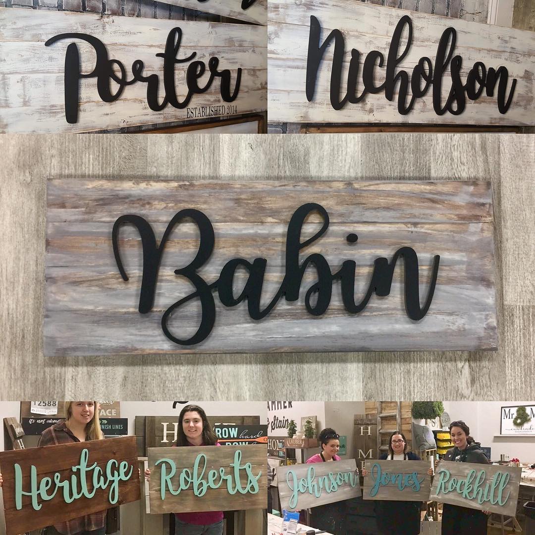 Browse our 3D letter project choices. This is for informational purposes, not for booking a workshop. To book a workshop, please visit the "Book A Workshop" tab on the website or call 352-209-7588 for more info. Most signs measure 36"x17.5" but are custom built for each word so it may vary. Letters are 10" tall with a max of 10 characters. These letters can take up to a month to custom order so they are only available during a posted workshop. If you'd like us to make this sign for you instead of attending a workshop, please place your order below and we will contact you.