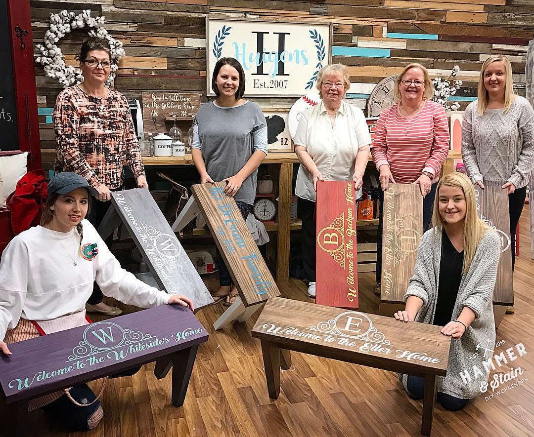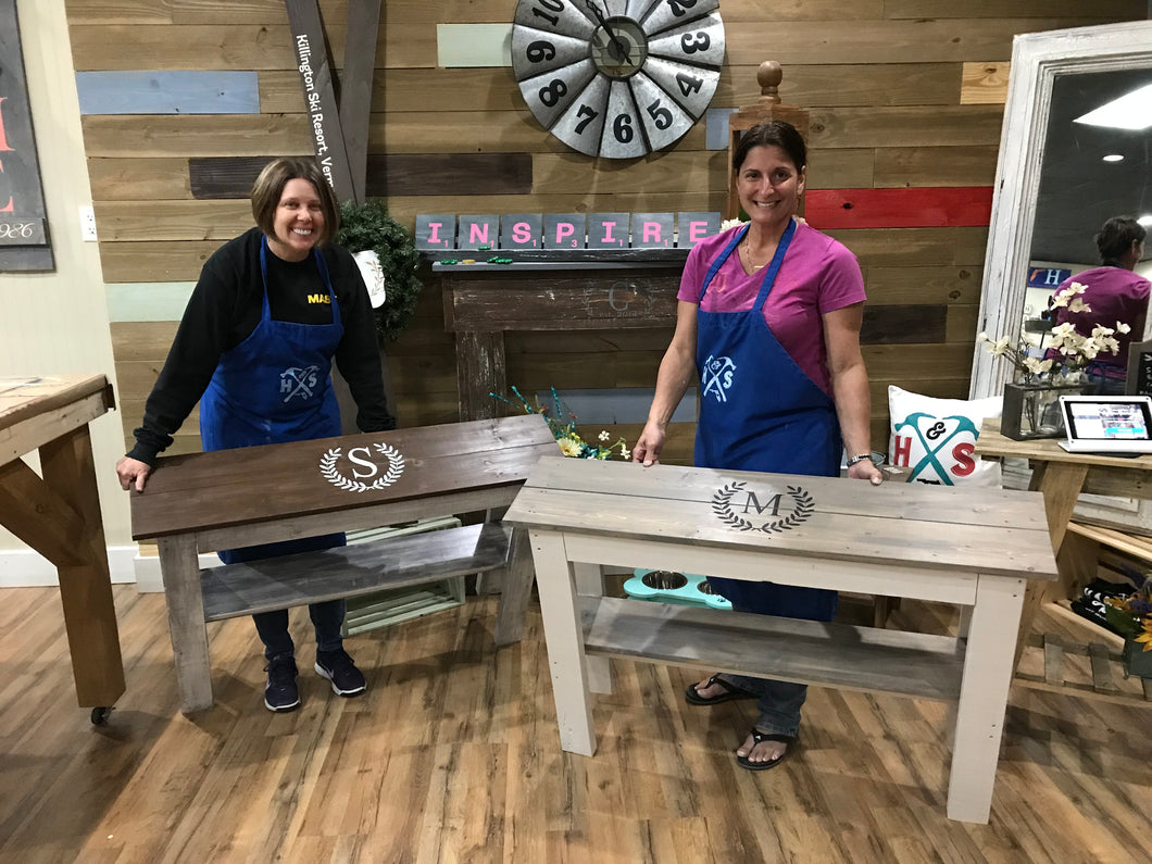 Browse our furniture project options. This is for informational purposes, not for booking a workshop. To book a workshop, please visit the "Book A Workshop" tab on the website or call 352-209-7588 for more info. If you'd like us to make this sign for you instead of attending a workshop, please place your order below and we will contact you.