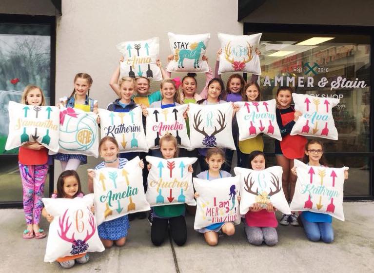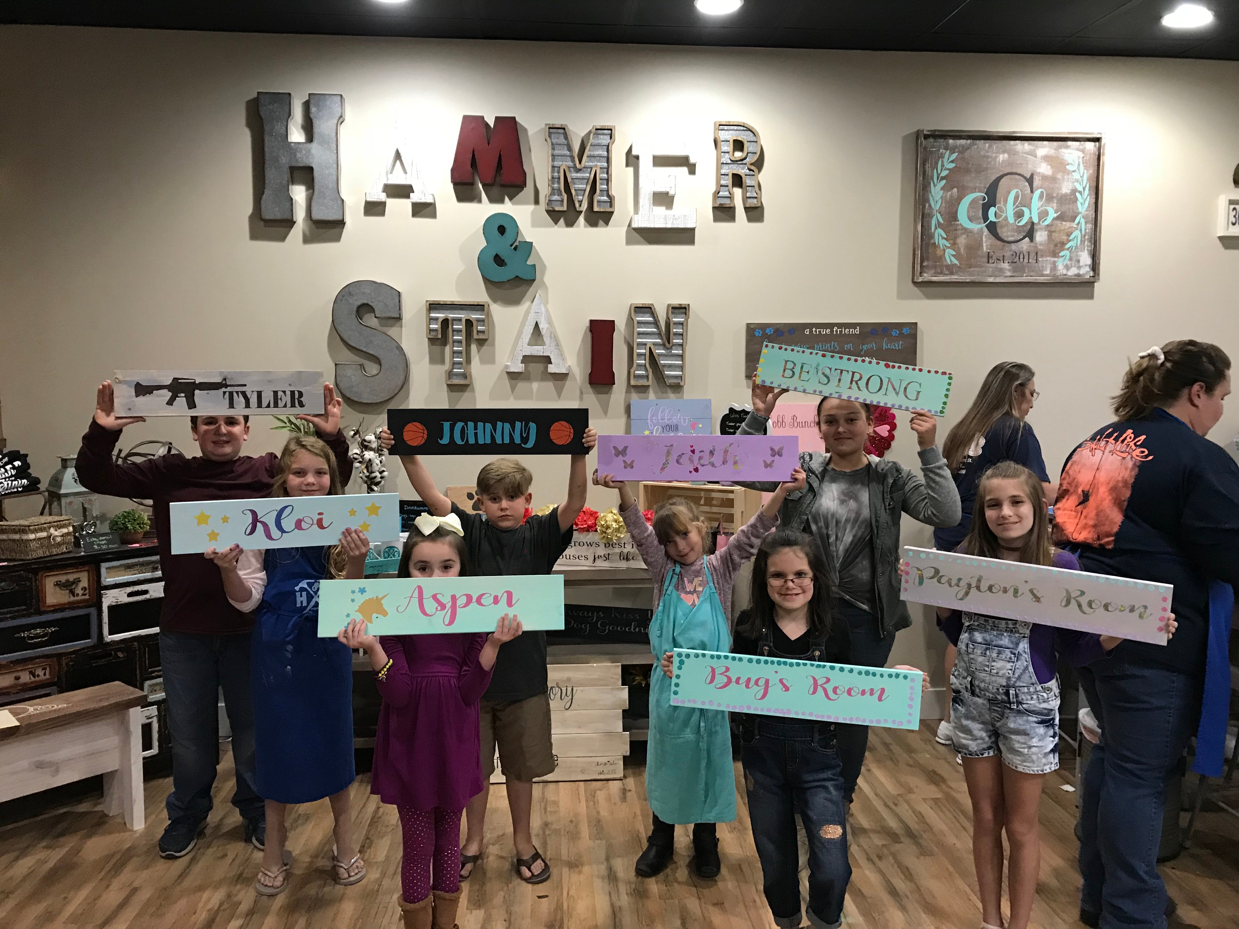 Browse this link for our kids pillow/plank/wood round options. This is for informational purposes, not for booking a workshop. To book a workshop, please visit the "Book A Workshop" tab on the website or call 352-209-7588 for more info. If you'd like us to make this sign for you instead of attending a workshop, please place your order below and we will contact you.