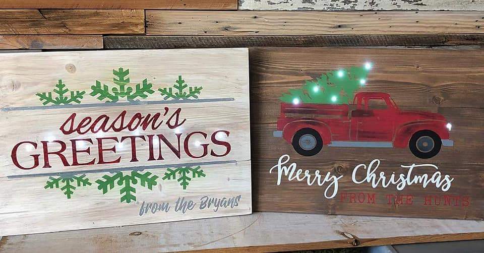 Browse our collection of holiday projects. This is for informational purposes, not for booking a workshop. To book a workshop, please visit the "Book A Workshop" tab on the website or call 352-209-7588 for more info. If you'd like us to make this sign for you instead of attending a workshop, please place your order below and we will contact you.